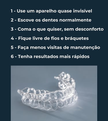 Os alinhadores invisíveis são indicados para a maioria dos casos de correção dental. Eles movimentam os dentes de forma controlada e segura, como um aparelho comum — mas com mais conforto, sem ferros e quase sem aparecer!